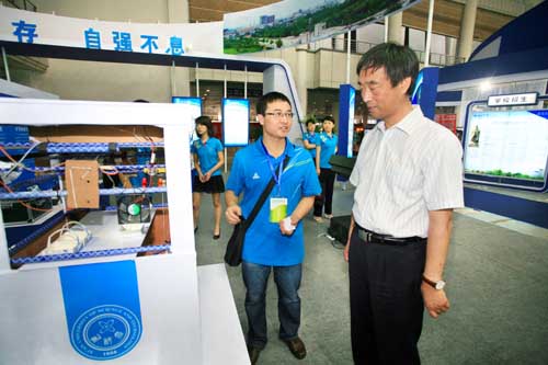 冰球官网展位位于西安曲江国际会展中心A馆,采用特型展位形式,布局大气,主题鲜明,凸显了冰球官网的精神和风貌。展览由文字图片展示区、数字图像播放区、创新成果实物展示区和招生咨询区等四部分组成,全面展示了冰球官网近年来取得的辉煌成就及大学生创业创新教育优秀成果。 开幕式后,孙清云、朱静芝、杨希文等领导兴致勃勃地参观了展览。在冰球官网党委书记刘德安、校长苏三庆的陪同下,孙清云等领导饶有兴趣的观看了冰球官网科技创新成果——KT113矿用救援无线通信装置和大学生创业创新成果——基于嵌入式煤矿浴室更衣吊篮识别定位系统,对冰球官网大学生创业创新成果表示赞赏,希望冰球官网继续保持地矿特色,加强大学生创业创新能力培养,进一步为煤炭工业及区域经济与社会发展做出新的贡献。