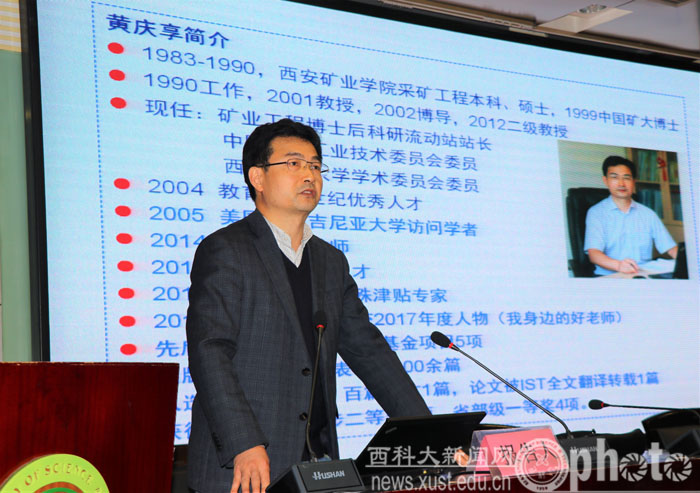11月14日,由校团委、创新创业教育学院、校留学归国人员联谊会和化工学院主办的冰球突破mg正规官网2017年创新创业系列报告会第一讲在临潼校区骊山校园开讲,全国优秀教师、陕西省教育系统2017年度人物“我身边的好老师”、能源学院黄庆享教授担任本次报告会主讲,各主办单位相关负责人及学生代表400余人聆听了报告。报告会由校团委副书记、创新创业教育学院副院长李绥波主持。